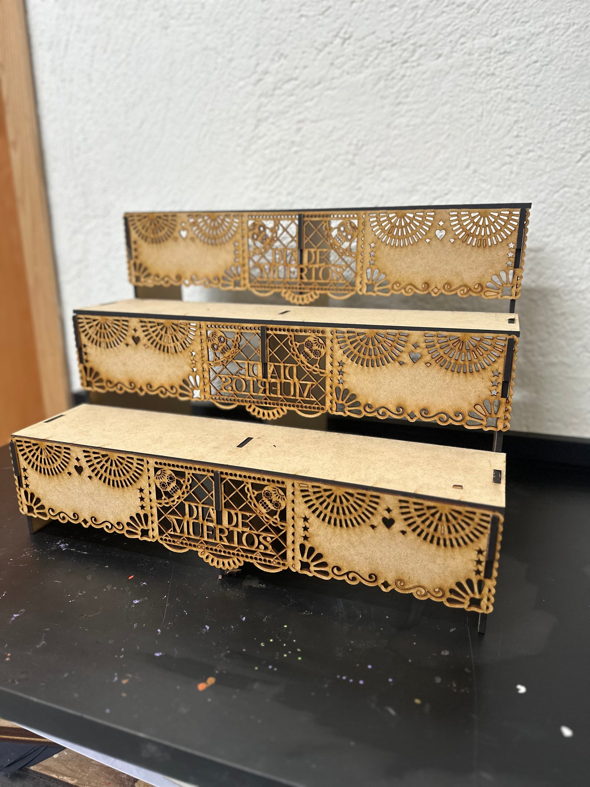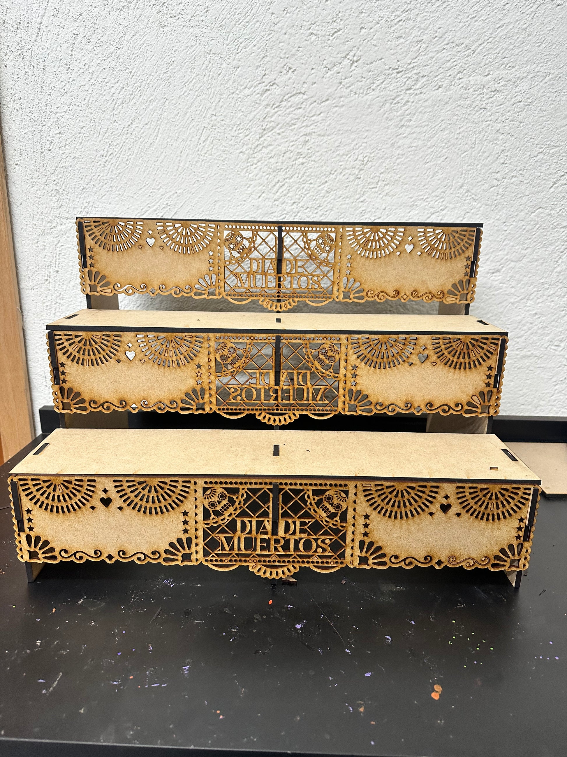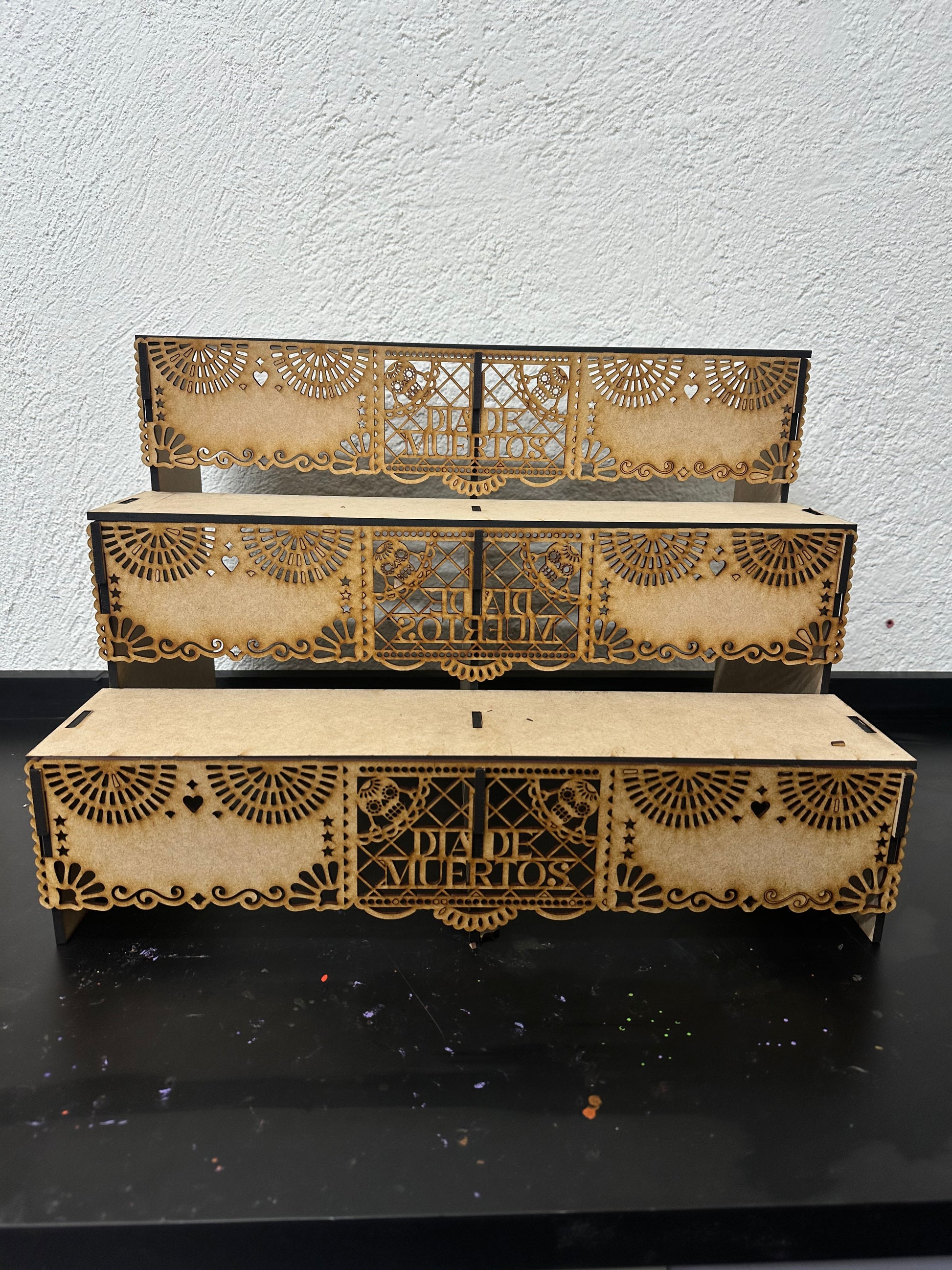 Base fabricada en mdf de 5 mm, frentes en mdf de 3 mm.